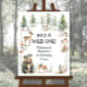 WILD ONE BIRTHDAY WELCOME SIGN | Cute, sweet baby animals in a mountain pine forest setting, a bear with a foliage wreath on her head, a deer, fox, rabbit, hedgehogs and a little bird are surrounded by mushrooms and wild flowers with foliage greenery. Perfect for a gender neutral baby shower or for a boy or girl. There is a complete product collection available to coordinate: MSP0104
