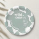 Serve up smiles and treats with these adorable 'Wild One' themed paper plates for your little one's first birthday celebration! Featuring a charming illustration of a dapper duck in a hat and boots, along with the 'wild one' text and your child's name and 1st birthday details. The stylish sage green background with a playful white organic chequerboard pattern creates a delightful backdrop for your party food. These sturdy, disposable plates make cleanup a breeze, allowing you more time to enjoy the festivities. Perfect for rustic, farm, or woodland-themed parties, these plates are a must-have for Noah's milestone birthday!