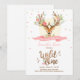 Wild One Deer birthday invite Woodland Pink wood