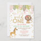 Wild ONE First 1st Birthday Glitter Confetti Palm Leaf Leaves Lion Giraffe Invitation Girl