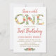 Wild ONE floral typography girl 1st birthday party Invitation