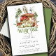 Wild one theme enchanted forest woodlands 1st birthday invitation for boys or girls. Magical giant mushrooms, forest animals, and trees, watercolor invitation. Solid green on the back of the invite.