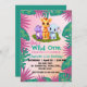Wild One Giraffe Hippo jungle 1st Animal Birthday Invitation