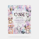 Personalise this vibrant Wild One party animals jungle safari 1st birthday party acrylic welcome sign with your own wording easily and quickly, simply press the Edit Using Design Tool button to further re-arrange and format the style and placement of the text. Featuring cute jungle animals wearing colourful glasses and party hats, leopard patterned balloons and a vibrant leopard print in purple, pink, blue and green hues. For a seamless and coordinated look, explore our range of matching items available in-store. (c) The Happy Cat Studio
