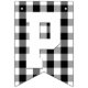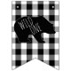Trendy, lumberjack plaid pattern forest bear Wild One first birthday party decor bunting flags- White dimensional look, retro style letters read 'Happy Birthday' across the banner. Rustic black and white buffalo check plaid pattern background. Centre and end flags display a black bear shadow that reads 'Wild One' in primitive style, handwritten look lettering. Popular, woodland animals theme, forest lumberjack 1st birthday party decor. We have more bear lumberjack birthday bunting flags, as well as coordinating lumberjack birthday party supplies in our Zazzle.com/angela65* shop.