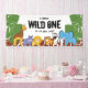 Enjoy the safari theme for the baby shower. Complete with a giraffe, zebra, hippo, tiger, lion, elephant and jungle leaves.