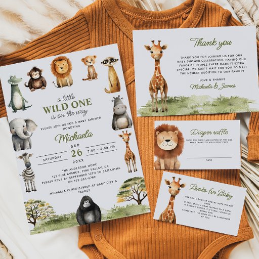 Wild One On The Way Cute Baby Animals Baby ShowerDesigned by Dragonflies & Dreams