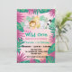 Wild One Pink zoo jungle 1st Animal Birthday girl Invitation