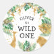 Wild One Safari 1st Birthday Party Green Gold Classic Round Sticker
