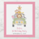 Thank the parents and adults attending your girl's first birthday party with a custom bottle of wine! These fun wine bottle labels feature a cute illustration of baby jungle animals (lion, elephant, zebra, monkey and giraffe) piled into a safari vehicle and her name and "1st Birthday Party" in coordinating pink script. You can personalise the text on the vehicle (initially set to she is a wild one) and the party date.