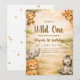 Get ready for a jungle adventure with this charming "Wild One" 1st birthday invitation! Perfect for your little explorer's special day, this design features an array of cute watercolor safari animals, including a playful monkey, a friendly giraffe, a sweet elephant, a courageous lion cub, and a striped zebra, all set against a warm, sun-drenched savannah backdrop. The elegant script "Wild One" and "Abigail's 1st Birthday" lettering are fully customisable. This invitation is ideal for both boys and girls, offering a delightful way to invite guests to a memorable first birthday celebration.