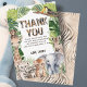 Introduce a touch of the wild to your child's special day with PixeliaDesigns' "Wild One Safari Animals 1st Birthday Thank You" cards. These beautifully crafted cards are a perfect way to express your gratitude, featuring stunning watercolor artwork of tropical leaves and beloved safari animals, including the majestic tiger, playful zebra, gentle elephant, and towering giraffe. Personalise each card with your celebrant's name, making it a unique and cherished keepsake for each recipient. Available in pristine white, serene blue, and deep navy blue, these cards provide a backdrop that accentuates the vivid colours of the safari theme. Ideal for concluding your little one's memorable first birthday, these thank you cards are not just a gesture of appreciation but a lasting memento of a wild and wonderful celebration.
