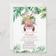 This first birthday invitation with watercolor wild animals, and palm leaves.