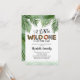 Wild one baby shower invitations featuring a simple white background, green glitter, tropical jungle palm leaves, the saying "a little wild one is on the way" in different animal prints, and a party template that is easy to personalise.