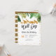 Wild One Safari Birthday invitation with wild animals, lion, monkey, elephant, bear, giraffe, and gorilla.