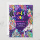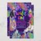 Wild One Safari Neon Rainbow Cheetah Birthday Invitation