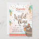 ♥ A perfect way to invite your guests to your little one's birthday party! Wild One theme, with feathers, tribal bear, boho in colours blue green and orange. Perfect for a First birthday party for a boy.
