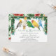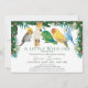 Celebrate the upcoming arrival of your little wild one with this whimsical tropical themed baby shower invitation. The design features a group of adorable exotics parrots and tropical watercolor greenery with flowers