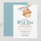 Wild One Watercolor Teddy Bear Baby Shower Invitation