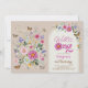 This beautiful design combines the free-spirited allure of colourful wildflowers with the delicate charm of vintage butterflies. At the heart of this invitation lies a modern and whimsical text, thoughtfully framed by a stunning boho arch that adds an element of rustic elegance. The palette is a vibrant mix of natural greens, hot pinks, moody purple, sunny yellows, and sky blues, making it a feast for the eyes and perfectly suited for a memorable first birthday party.