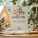 Wild One! Woodland Animal Birthday with bear, fox, deer, racoon and trees with woodgrain back.