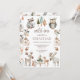 This whimsical rustic woodland animals birthday party invitation can be customised for boys or girls, and features cute painted forest animals that children love, with mushrooms, acorns, and trees, encircling the text of the invitation. The type is brown, and you can use the simple design tool to change font colours if you prefer another colour.