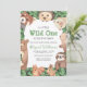 Wild One Woodland Animals w Bear Green Baby Shower Invitation