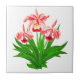 Ceramic tile in a digital illustration of a wild orchid plant, based on vintage botanical art, with flowers in shades of pastel to deep coral pink, and dark green leaves