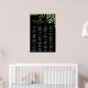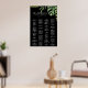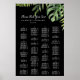 This wild palm black alphabetical seating chart poster is perfect for a beach or destination wedding. This sign can be used to organise your guests alphabetically or by table number. The design features an exotic array of green watercolor banana palm tree leaves, ferns, foliage, botanical plants and greenery on a black background for a bold tropical summer feel. This wedding poster includes enough room for up to about 120 guests. Make room for more (or less) guests by clicking the "customise" button and decrease or increase the size of the font. In addition to the placement of each guest, personalise this sign with the names of the bride and groom and the wedding date.