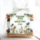 Featuring a whimsical design that perfectly captures the spirit of the jungle, this cute sticker is sure to impress your guests. The design showcases a variety of wild animals, including lions, zebras, and elephants, surrounded by lush jungle tropical leaves and colourful balloons in shades of green, black and gold. The leopard print adds a touch of wildness and fun to the design, while the playful typography sets the tone for a joyous celebration.