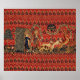 WILD PEOPLE IN DEER HUNT, Animals ,Red Floral Poster