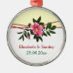 Wild pink rose floral wedding keepsake ornament, featuring a beautiful wild rose in pink with dark green leaves, red waved lines and halftone elements on white and cream background. This floral, elegant and romantic design can be used for special occasions such as engagements, weddings, birthdays, anniversaries or Mother’s Day.