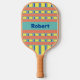 Add a touch of fun and whimsy to your Pickleball Paddle, with this wild plaid design. The vertical stripes are a bold yellow, white and blue. The horizontal lines are orange and green. On the front of the paddle there is an area for you to personalise your paddle. These paddles are approved for use by USA Pickleball (formerly USAPA). They are printed with my original patterns and designs; almost all can be customised. You can choose your grip colour, black, white or tan. For an additional cost you can purchase a protective cover and an outdoor Pickleball Ball.