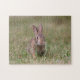 Adorable little cottontail rabbit hopping in the grass towards the camera.