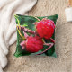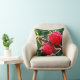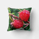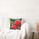 Wild red raspberries are the theme of this fine art throw pillow. Two juicy berries with a cerise colour are attached to the red brown bramble branches. Green leaves and an aqua turquoise background complete the abstract design. The photography has been digitally enhanced to create an impressionistic feeling.