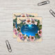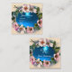 WILD ROSES WITH AQUA BLUE GEM STONE MONOGRAM SQUARE BUSINESS CARD