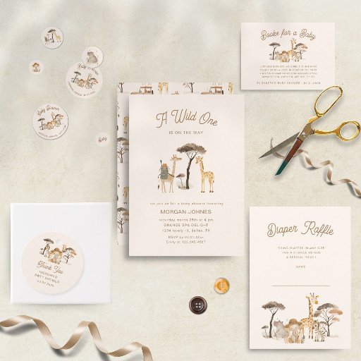 Our "Wild Safari Animals Boho Baby Shower" collection features watercolor illustrations of safari animals and trees in a gender neutral colour palette. Perfect for a nature inspired baby shower. Check our store for more matching items from this collection.