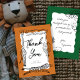 Introducing our Wild Safari Animals Frame Terracotta Thank You Card, the perfect companion to our "Wild Safari Animals Frame Terracotta Baby Shower" invitation! Featuring charming black line art of a giraffe, elephant, cheetah, and zebra, this card brings a playful spirit to your heartfelt messages. The animals create a whimsical frame around a scalloped white box that showcases "Thank You" in a casual handwriting-style script and your personalisation in a casual sans serif. Flip it over, to a green background adorned with tropical leaves that echo the fun of the front design. There's a blank white scalloped box for your personal note of gratitude. Whether you’re expressing gratitude for sweet gifts or shared moments, this card adds a splash of safari fun to your notes. Perfect for any wild occasion!