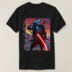 "Wild Spirit" T-Shirt. Detailed design of a panda warrior in cyber samurai armour, standing in a heroic pose on top of a hill, holding a glowing katana. Red sunset in the background, dramatic shadows and lighting, futuristic armour with neon accents, expressive face, and determination in the eyes.