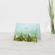 This strawberry meadow thank you note card features tiny yellow buttercups, blue forget-me-nots, a single daisy and a bounty of tiny, ripe, red strawberries peeking out from between wild strawberry plants at the lower border of the card - the background is a field green to sky blue watercolor gradient - by katz_d_zynes | Part of katzdzynes’ Strawberries and Wildflowers collection >> https://www.zazzle.com/collections/119185498872390969