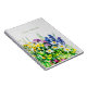 Colourful wild summer flowers, painted with watercolors, blue, yellow, pink and purple.