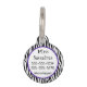 Zebra print and purple makes this tag stand out and is purrfect for a crazy kitty or a sassy pet. Vector art by Night Owl's Menagerie, 2014.