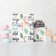 Wild Things Safari Animal Kids Birthday Party Wrapping Paper. Zebra, rhinoceros, giraffe, and meerkats with leaves in a safari theme. Wild things kids birthday supplies for a safari wild thing party. www.SamAnnDesigns.com