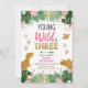 Wild Three Dino Party Girl Pink Dinosaur Birthday Invitation