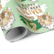 his personalized gift wrap features a tiger graphic and bold 'ROARING INTO' text, alongside 'HAPPY BIRTHDAY'. Perfect for adding a wild touch to the special day. The vibrant design and custom name make it a standout choice for anyone who loves tigers and adventure.