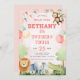 Wild Time Jungle 3rd Birthday Party Pink Invitation