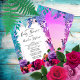 Bright, bold and colourful flowers and ferns tropical boho floral Baby Shower design with accent frame in a gradient pink to purple tone.