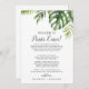 This wild tropical destination wedding welcome letter is perfect for a destination wedding welcome bag. The design features an exotic array of green watercolor banana palm tree leaves, ferns, foliage, botanical plants and greenery for a tropical summer feel. The front of the card features a welcome letter and optional itinerary.