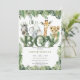 Wild tropical greenery leaves cute safari animals invitation