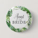 This wild tropical palm aunt of the bride button is perfect for a beach theme wedding shower. The design features an exotic array of green watercolor banana palm tree leaves, ferns, foliage, botanical plants and greenery for a tropical summer feel.